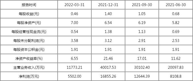 乌黑眸子的贵 正海生物2022一季度业绩 正海生物每股收益多少?是做什么的?下面同鲸多君来看看。