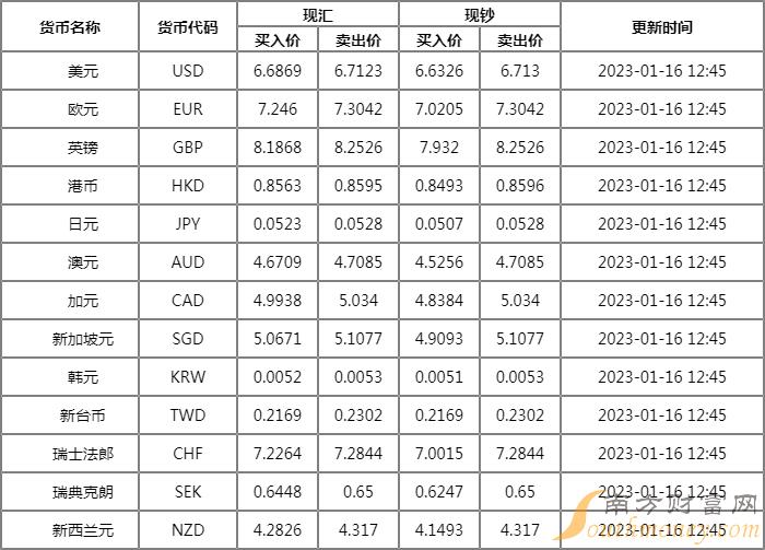 小蓝眼睛的伏特加 2023年汇丰银行外汇牌价表 1月14日汇丰银行人民币美元汇率多少,下面同看点君来看看。