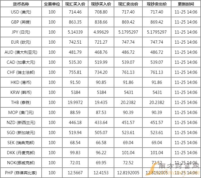 小蓝眼睛的伏特加 交通银行外汇牌价表 11月25日交通银行汇率是多少?下面同小红帽来看看。