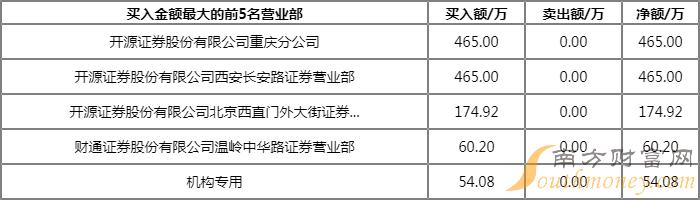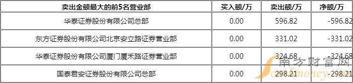 成交额:3301.06万元 合计买入:1465.15万元 合计卖出:1835.91万元 净额:-370.75万元