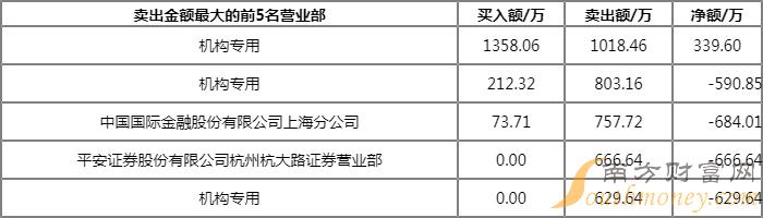 成交额:7896.95万元 合计买入:3137.51万元 合计卖出:4759.45万元 净额:-1621.94万元