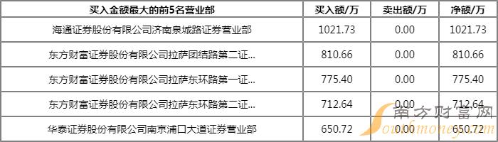 今日上榜营业部中,第一大买入营业部为海通证券股份有限公司济南泉城路证券营业部,买入金额为1021.73万元,第一大卖出营业部为中信建投证券股份有限公司杭州庆春路证券营业部,卖出金额为2192.84万元。