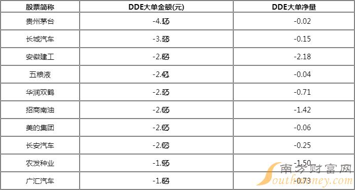 5月26日 大单金额流出前十名个股如下(以下数据取自10点50分):