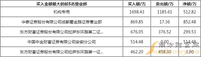 上榜的前五大买卖营业部合计成交7607.33万元,其中,买入成交额为4278.68万元,卖出成交额为3328.66万元,合计净买入950.02万元。
