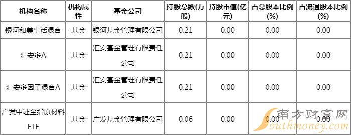 截至2021年12月31日 ,共1家基金持有中船汉光,持仓量总计0.00亿股,占流通A股0.00%。较上期总持仓增加了-3.00万股,基金持仓与2021年06月30日相比:增仓:0家 减仓:0家 新进:1家 退出:5家。其中银河和美生活混合持仓最多。