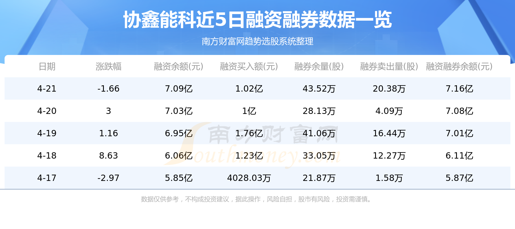 4月21日协鑫能科融券信息显示,融资方面,当日融资买入1.02亿元,融资偿还9587.67万元,融资净买额599.25万元。融券方面,融券卖出20.38万股,融券偿还4.99万股,融券余量43.52万股,融券余额617.13万元。融资融券余额7.16亿元。近5日融资融券数据一览见下表: