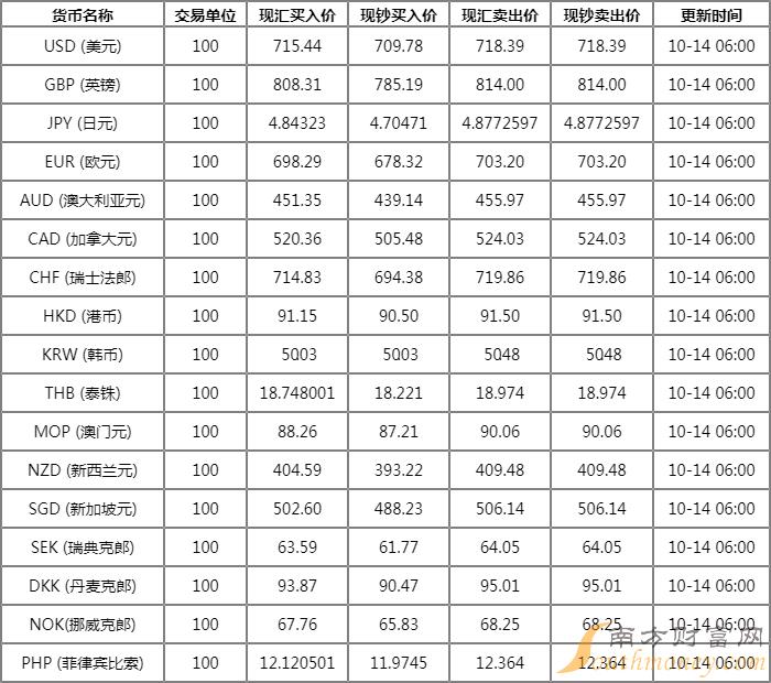 10月14日,人民币兑美元中间价报7.1088,上调13个基点。前一交易日中间价报7.1101。在岸人民币16:30收盘价报7.1928,23:30夜盘收报7.1701。