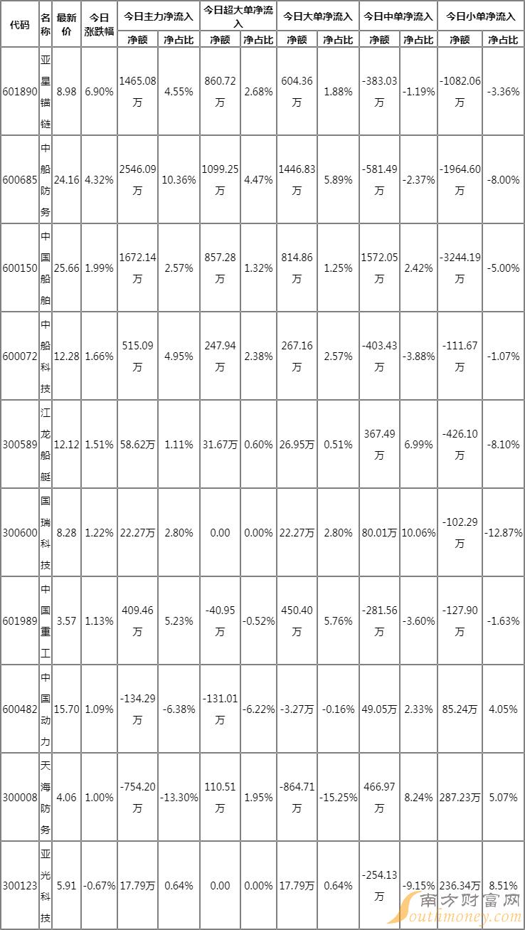 船舶制造板块资金流向明细