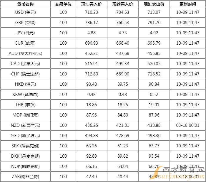 呆斜着眼的木耳 中国农业银行外汇牌价表 10月9日农行人民币汇率是多少?下面同小南来看看。