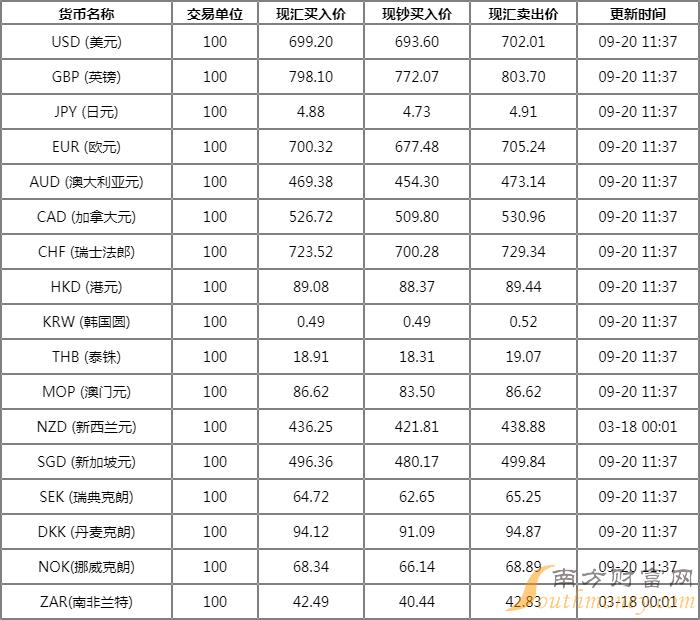 呆斜着眼的木耳 中国农业银行外汇牌价表 9月20日农行人民币汇率多少?下面同圈圈来看看。
