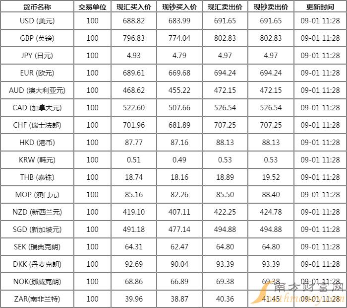 呆斜着眼的木耳 建设银行外汇牌价表 9月1日建设银行人民币对美元汇率多少?下面同小蔡来看看。