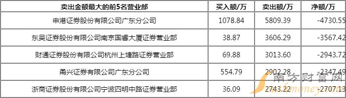 上榜的前五大买卖营业部合计成交3.95亿元,其中,买入成交额为1.66亿元,卖出成交额为2.29亿元,合计净卖出6330.85万元。
