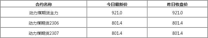 (2023年5月15日)今日动力煤期货最新价格行情,如下: