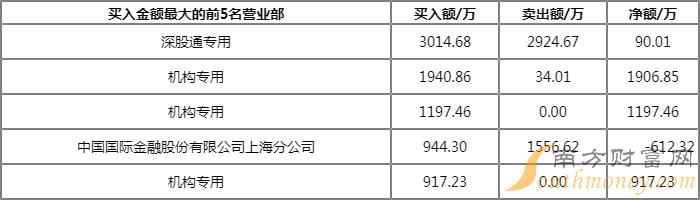 成交额:1.61亿元 合计买入:8852.79万元 合计卖出:7217.36万元 净额:1635.44万元