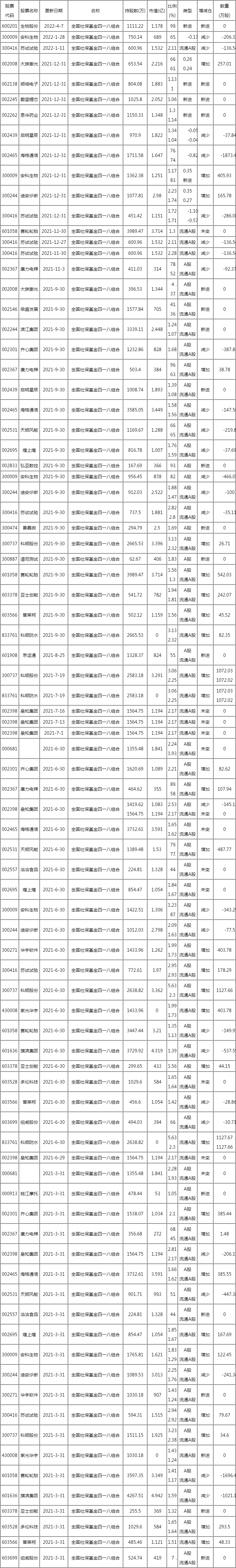 蓝晓 全国社保基金四一八组合新进股2022哪些?社保基金四一八组合持股明细,新进股票2022有哪些?下面同蓝猫君来看看。