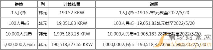 蓝晓 人民币对韩元汇率是多少 5月21日韩元汇率查询。下面同圈圈来看看。