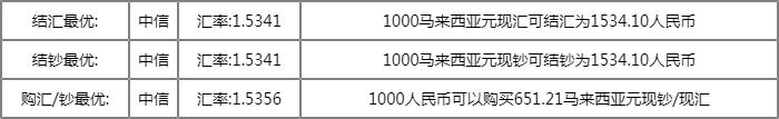 银行马来西亚林吉特汇率对比