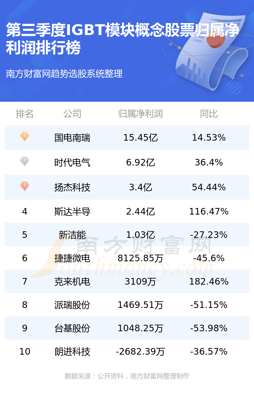 怒眉立目的瀑布 趋势选股系统财报工具数据整理,截至三季度,IGBT模块概念股票净利润排行榜情况如下(数据仅供参考):