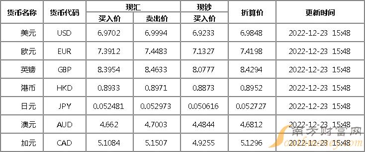 银发披肩的宁 邮储银行外汇牌价表12月23日 邮储银行人民币汇率多少?下面同道财君来看看。
