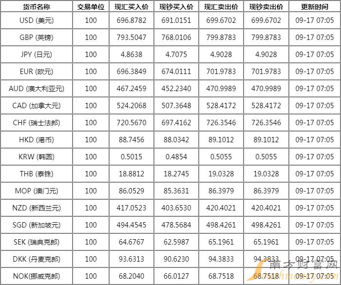 银发披肩的宁 光大银行外汇牌价查询 9月17日光大银行汇率走势,下面同侃财君来看看。
