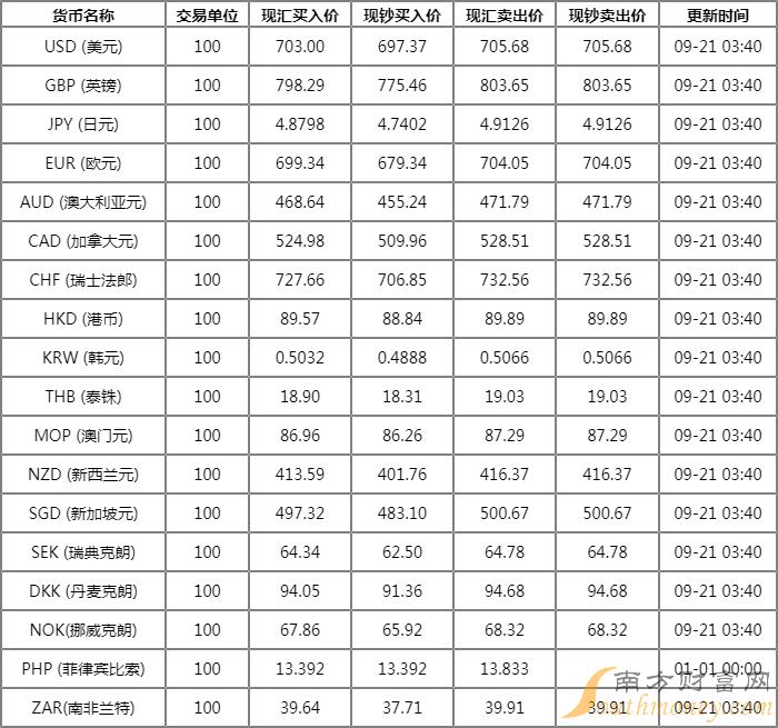 银发披肩的宁 中国工商银行外汇牌价表 9月21日工行人民币汇率多少?下面同小南来看看。