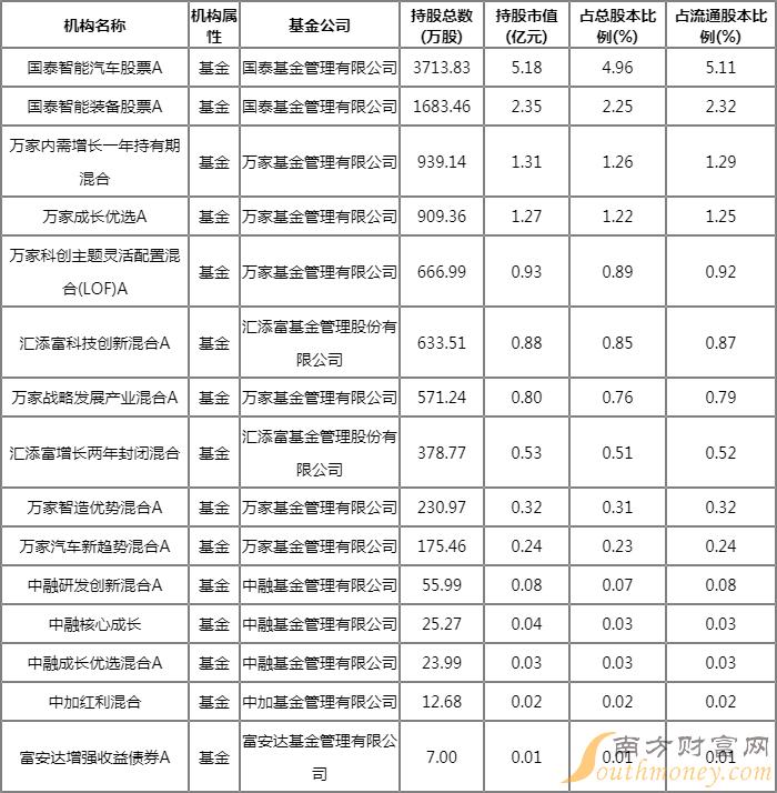 根据2022Q1季报公募基金重仓股数据,重仓该股的公募基金共11家,其中持有数量最多的公募基金为国泰智能汽车股票A。国泰智能汽车股票A目前规模为 74.86亿元 (截止至:2022-06-30)