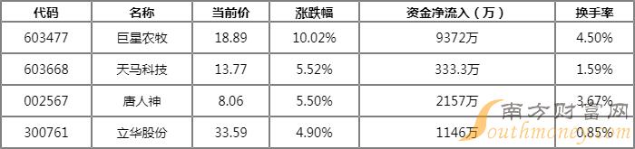截至今日15:00该板块表现较好的前3名个股为:华润三九(000999)涨幅4.06%, 成交金额1.75亿元,换手0.45%;汉森制药(002412)涨幅2.41%, 成交金额5320.45万元,换手1.84%;康弘药业(002773)涨幅1.82%, 成交金额3808.54万元,换手0.4%。