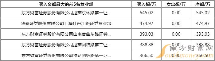 卖五为东方财富证券拉萨团结路第一证券营业部,该席位买入1384.23万元,卖出1527.14万元,净买额为-142.91万元。近三个月内该席位共上榜1010次,实力排名第8。
