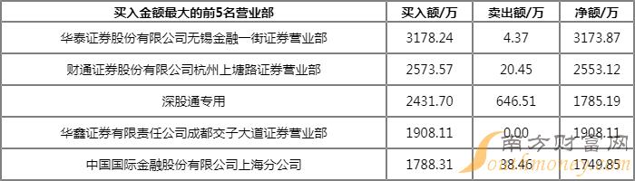 榜单上出现了4家实力营业部的身影,分别位列买一、买三、买五、卖五,合计买入1.25亿元,卖出1541.89万元,净额为1.09亿元。