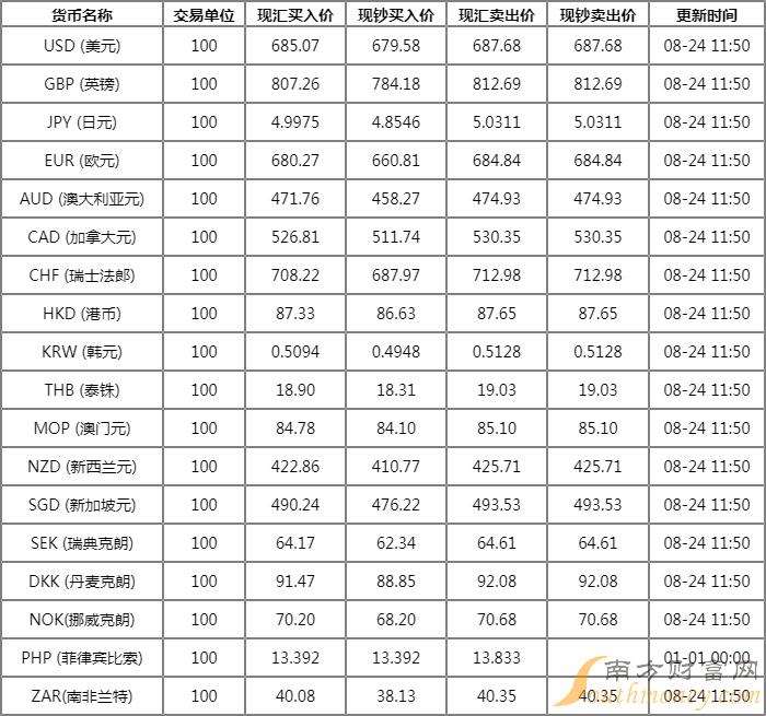 唇无血色的路灯 中国工商银行外汇牌价表 8月24日人民币汇率中间价多少?下面同火车君来看看。