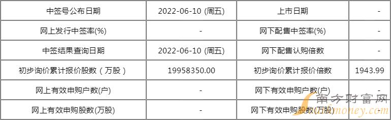 网上发行日期 2022-06-08 (周三) 网下配售日期 2022-06-08