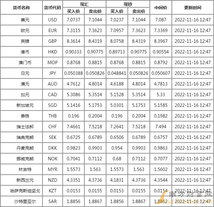 双目传神的竹笋 中信银行外汇牌价表 11月16日中信银行人民币汇率是多少? 下面同圈圈来看看。