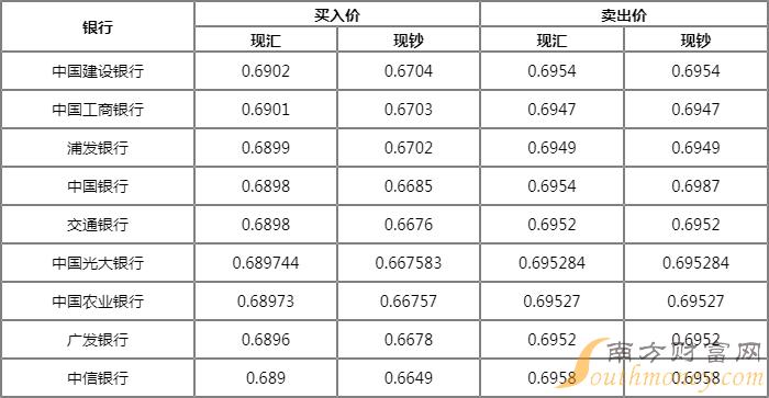 1挪威克朗 ≈ 0.693人民币