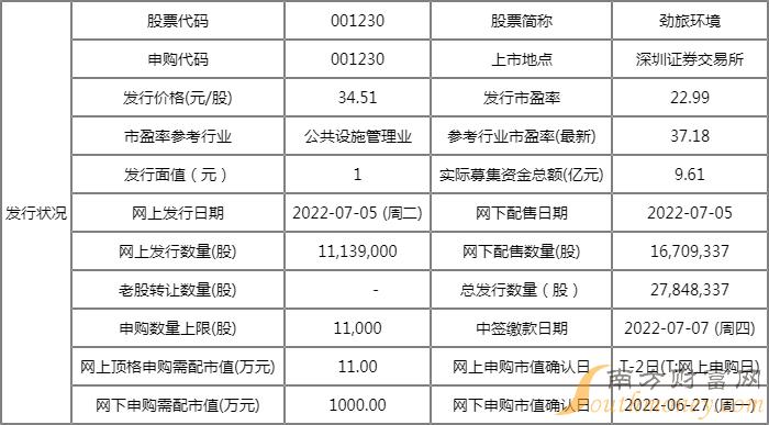 双目传神的竹笋 劲旅环境新股申购一览表 001230中签号公布日期查询,下面就随袋袋君来简易的了解一下吧。