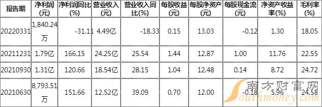 2022年第一季度季报显示,公司营业总收入6.36亿元,同比增长35.15%; 净利润1.85亿元,同比增长20.05%;基本每股收益0.07元。