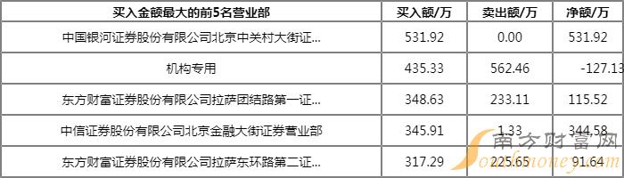 东方中科(002819)龙虎榜数据9月21日:日跌幅偏离值达7%的证券