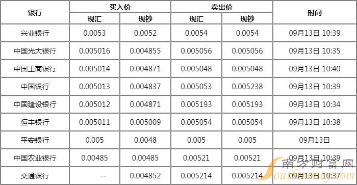 今日银行韩元牌价一览