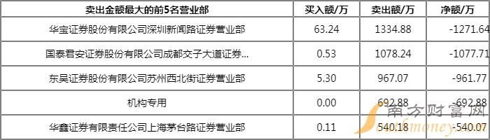 桂发祥(002820)龙虎榜数据9月6日:日跌幅偏离值达7%的证券