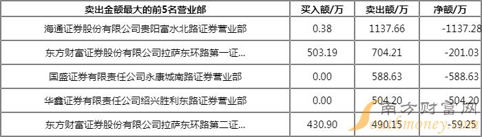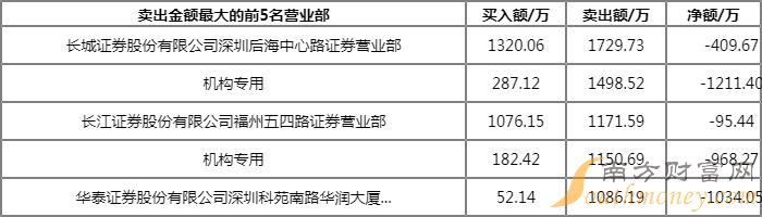 成交额:6887.69万元 合计买入:2502.73万元 合计卖出:4384.96万元 净额:-1882.22万元