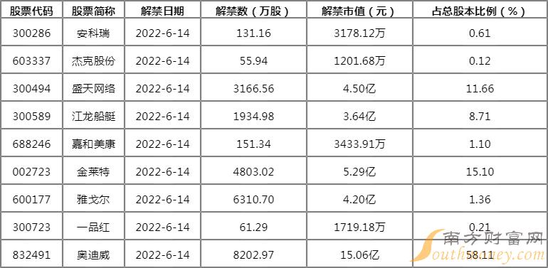 纪后做启的水煮鱼 明日限售股解禁股票有哪些(2022年6月14日),下文就随点金君来简单的了解一下吧。