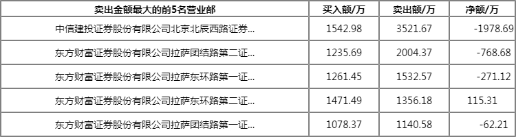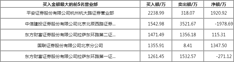 4月6日上榜原因:日涨幅达到15%的前5只证券。香雪制药股票上榜的前五大买卖营业部合计成交2.45亿元,占该股当天成交总金额的比例为23.86%,其中,买入成交额为1.63亿元,占该股当天买入成交额的比例为15.80%,卖出成交额为8290.18万元,占该股当天买出成交额的比例为8.06%,合计净买入7968.29万元,2家机构买入,成功率51.36%。
