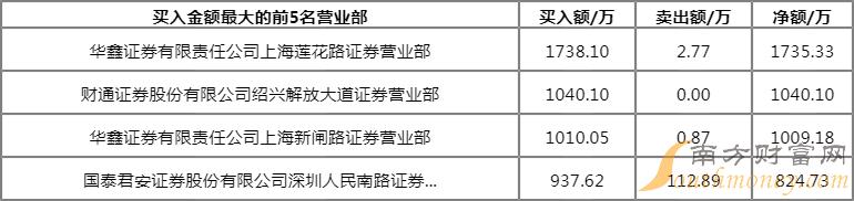 成交额:1.14亿元 合计买入:7329.12万元 合计卖出:4073.40万元 净额:3255.72万元