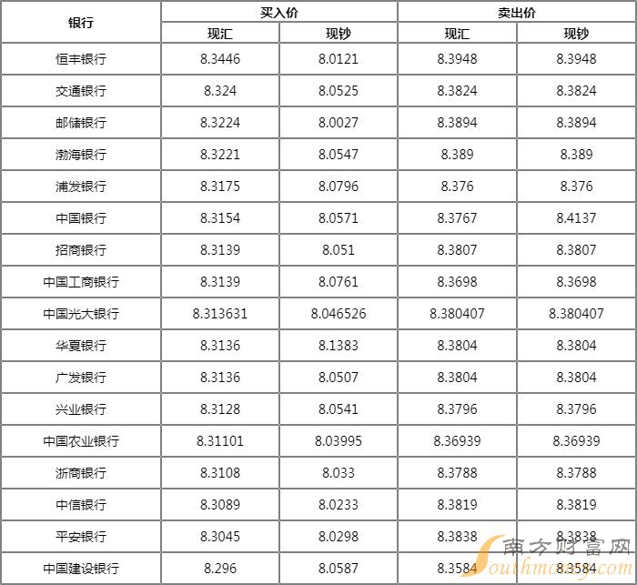 结汇最优:恒丰 汇率: 8.34461000英镑现汇可结汇为8344.60人民币