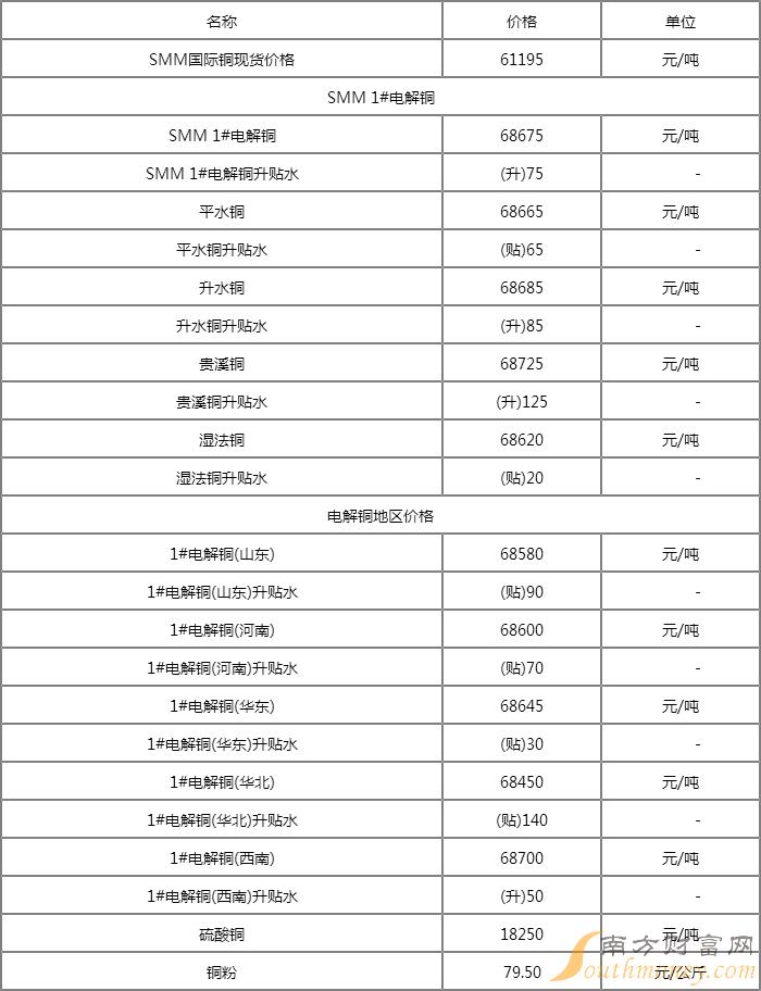 2023年3月14日今日铜价格多少钱一吨,如下: