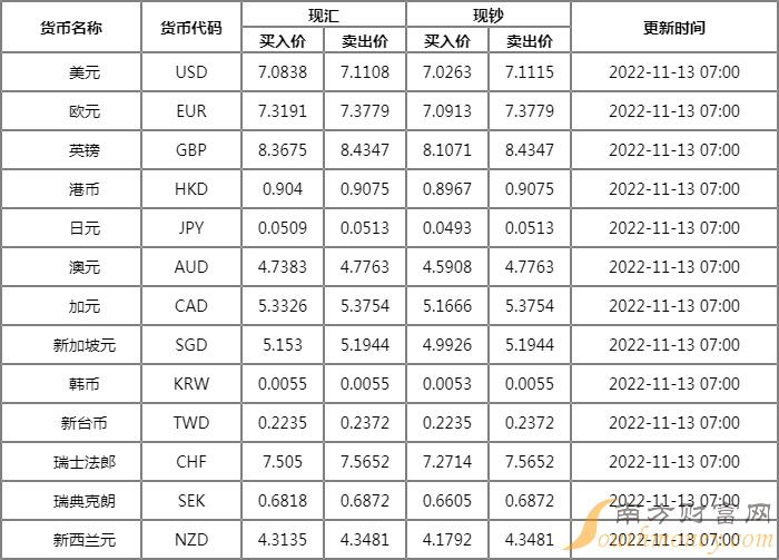 家伦 兴业银行外汇牌价表11月13日 兴业银行人民币对美元汇率是多少?下面同三江君来看看。