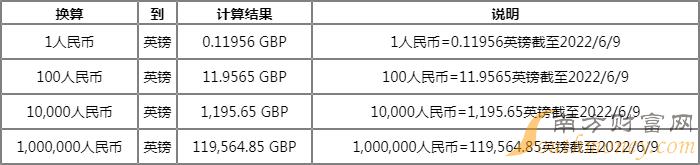 家伦 人民币兑英镑实时汇率查询 6月9日英镑汇率走势?下面同猫宁君来看看。