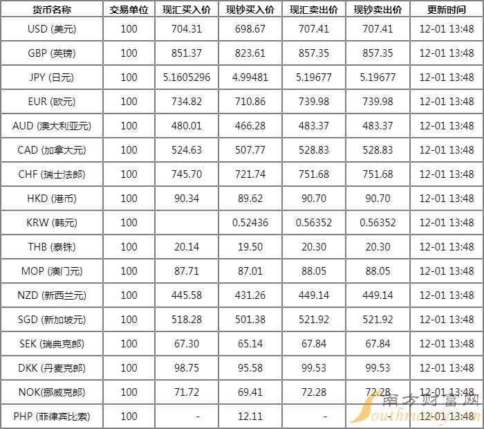 银发披肩的振 12月1日交通银行外汇牌价表 交行人民币对美元汇率是多少?下面同小宋来看看。