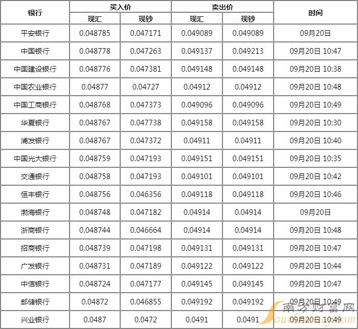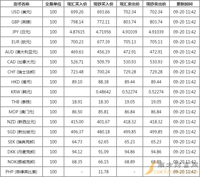 银发披肩的振 中国交通银行外汇牌价表 9月20日交行人民币汇率多少?下面同畅想君来看看。