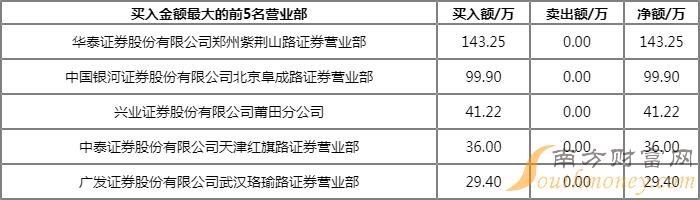 今日上榜营业部中,第一大买入营业部为华泰证券股份有限公司郑州紫荆山路证券营业部,买入金额为143.24万元,第一大卖出营业部为中国银河证券股份有限公司许昌文峰路证券营业部,卖出金额为140.85万元。