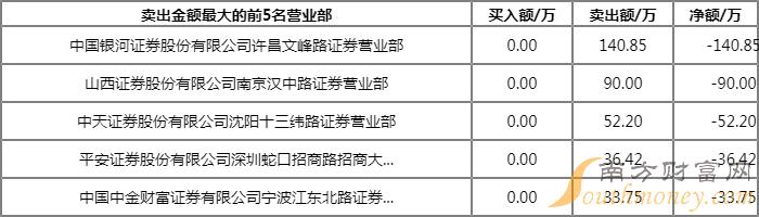上榜的前五大买卖营业部合计成交702.98万元,其中,买入成交额为349.77万元,卖出成交额为353.21万元,合计净卖出3.45万元。